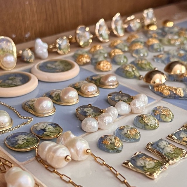- ドライフラワーを絵の具に見立てて、名画の構図や色味を再現したアクセサリーを制作しております。絵画や美術館巡りがお好きな方や、ご興味がある方、珍しいデザインがお好きな方は是非お立ち寄りください!