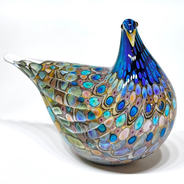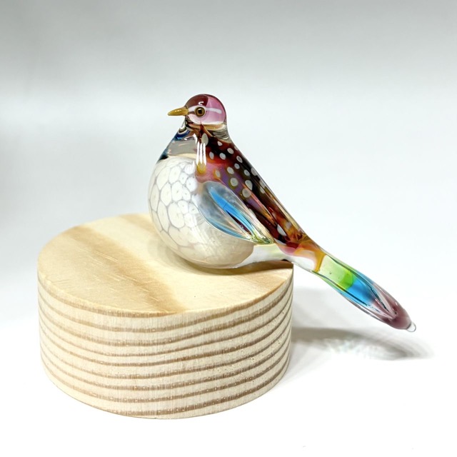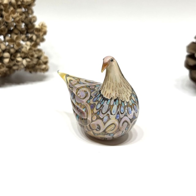 世界にただ一つのガラスの鳥です。バーナーワークという技法でガラスを溶かして空想の鳥を制作しています。細かな模様も全てガラスを溶かして描いております。
