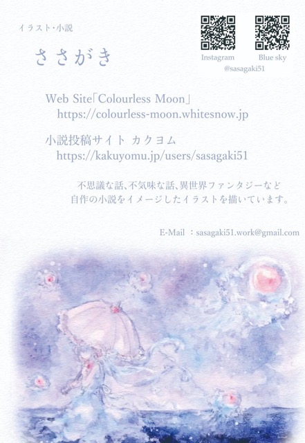 透明水彩・色鉛筆での原画やグッズを制作しています。自作の物語がベースになっていて、星空にまつわるものが多いです。