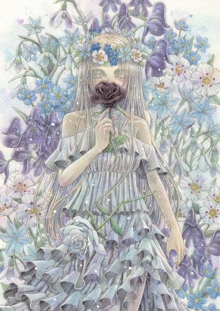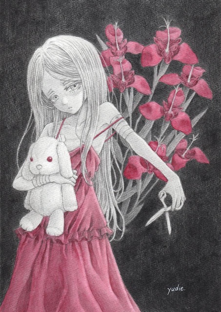 - 少女と花を主なモチーフに、悲哀や死生観を軸としたダークな世界観を描いています。鉛筆のタッチを活かした繊細な描写が特徴。名古屋、東京、大阪等で展示や即売イベントで活動中。