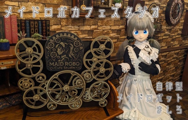 - 本物の自律型メイドロボ「ましろ」が接客する、スチームパンクな開発工房「メイドロボカフェスタジオ」へようこそ! メイドロボカフェスタジオでは、ここで開発された精巧な歯車インテリア「HuguruMag」をはじめとするオリジナルグッズを、ロボットましろ自らが実演販売し皆様へお届けします。 アンティークの温もりと最新技術が融合した、心躍るひとときをお楽しみください。