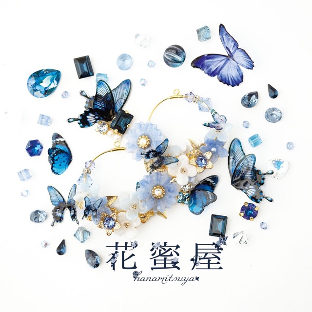 - 花と蝶をモチーフにしたアクセサリーを販売します。 レジンに羊毛を混ぜて色付けた独特の淡いグラデーションの花と、 実在の蝶々を基にデフォルメした蝶々たちを基軸に、 パールやビーズを組み合わせ、【小さなお庭】をイメージしたアクセサリーを製作しています。