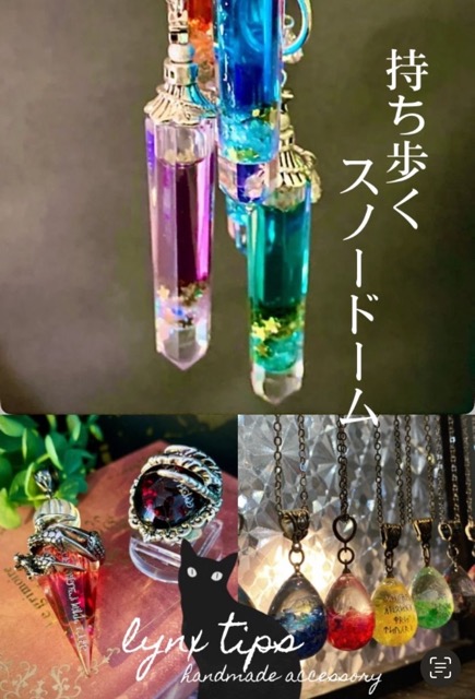 - レジンで造った小さなスノードームアクセサリー。 猫・魔法陣・ドラゴン・空・宇宙などをテーマに、幻想的な世界を小さなドームの中に表現しました。 当店は【持ち歩くスノードーム】をコンセプトに 品質の高いレジン【星の雫】のみを使用し ひとつひとつ手作業で丁寧に造った 世界にひとつだけのスノードームアクセサリーです。 ぜひ手のひらの中で揺れる世界を体感して下さい。