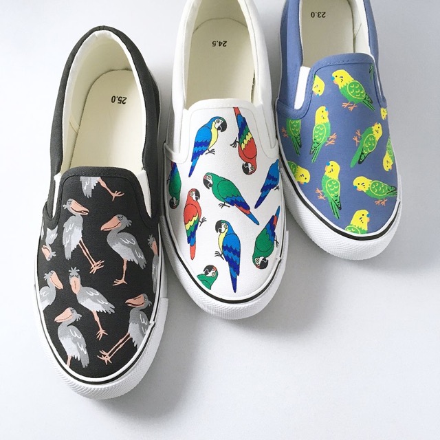 - みんなに見せたくなるオリジナル柄手描きスリッポンを制作しています。 当日は手描きスリッポン以外にも、誰かにプレゼントしたくなるようなお茶目なファッション雑貨やグッズなど、新作アイテムをたくさんお持ちします。
