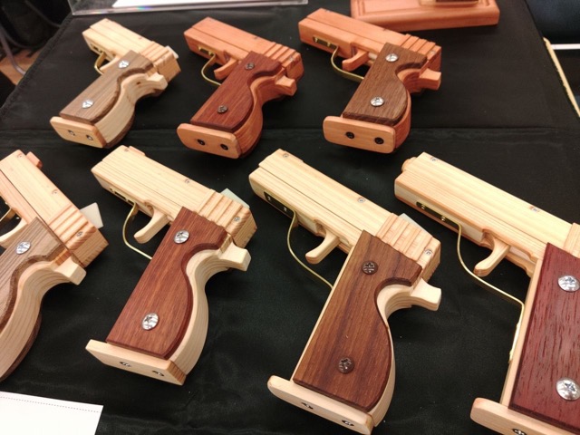 - 木工を中心としたゴム銃専門作家です。東海地方初出展です。最大6連発可能な本格ゴム銃や、ハエサイズの的を狙えるほどの命中精度を誇る精密射撃ゴム銃、小さくて可愛いミニチュアゴム銃などを中心に販売しています。ゴム銃の楽しさは写真や動画の見た目だけでは伝わりません。手に取って遊んでこそです。そのため作品は全品試し撃ち可能で用意しています。子供から大人までゴム銃の奥深い魅力を実際に体感してください。