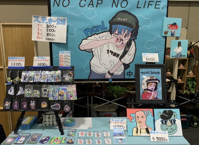 - キャップ女子やキャップアニマルのイラストのアパレルグッズや、大量ステッカー、ミニ原画などを販売します!!