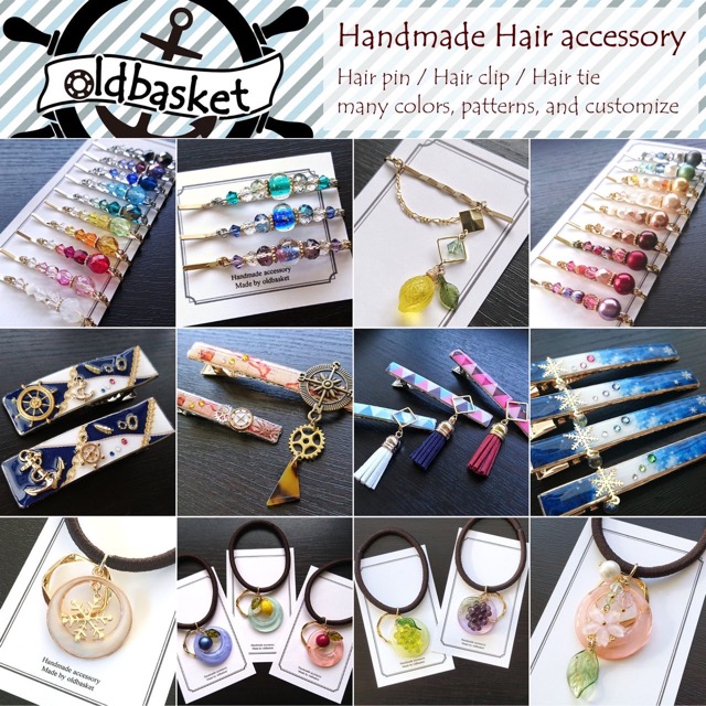 - 色柄豊富なヘアアクセサリーを作っています。 ヘアピン・ヘアクリップ各150種以上、ヘアゴム20種以上をご用意。 お好みに合わせて、その場で作品の一部パーツを交換・追加するカスタマイズもお承りしています。作品数×カスタマイズ数の掛け算で、組み合わせは無限大! 市販のヘアアクセサリーでは出会えない、あなただけのお気に入りが見つかりますよう!