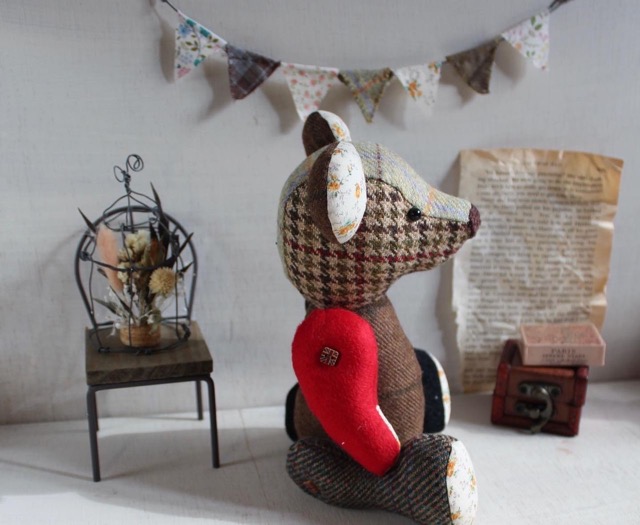 - イギリス現地で仕入れたカシミアウールやスコティッシュキルトでパッチワークのテディベアをお作りしてます。 男性のスーツやジャケットを仕立てる生地をハギレで仕入れているので、渋さと可愛らしさがミックスした大人が集めたくなるテディベアたち。 愛おしく抱きしめてやってください。