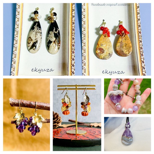 - 天然石を使ったハンドメイドアクセサリーのお店です。 天然石の持つ自然の美しさを生かしながら、日常にワクワクと喜びを届けられるようなデザインのアクセサリーを目指して作っています。 2つとして同じ模様がない天然石の、あなただけのお気に入りを見つけに来て頂きたいです。 猫、蛇、馬、龍、金魚、どんぐりなど個性的なモチーフもいっぱいあります!