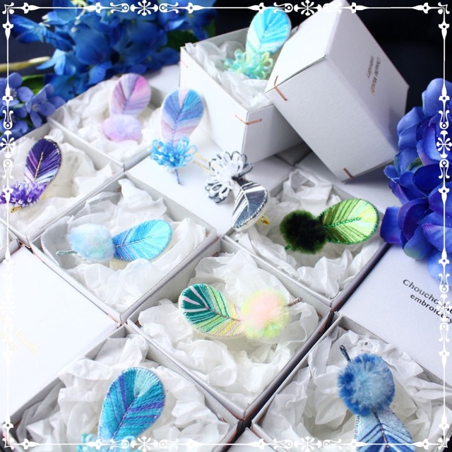 - 立体的に刺繍を施す《Stumpwork-スタンプワーク-》の技法を生かしてオリジナルの作品を制作しています。 質感様々な色とりどりの刺繍糸でつくる鳥の羽根や花のアクセサリーやオブジェは 水彩で描くようなじんわりとした優しい色合いであなたに寄り添います。《糸は宝石》という言葉、そこから浮かんでくる情景や身につける喜びを感じて頂けるようなものづくりを心がけています。