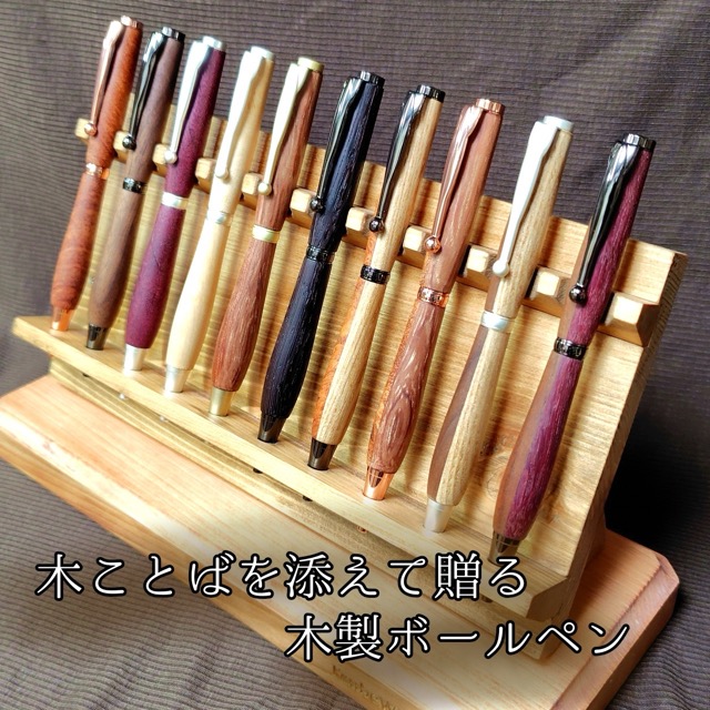 - 「木ことばを添えて贈る木製ペン」は花ことばと同じく、木が持つ「木ことば」を添えてプレゼントをする提案をしています。木ことばで贈り物を特別にしませんか。