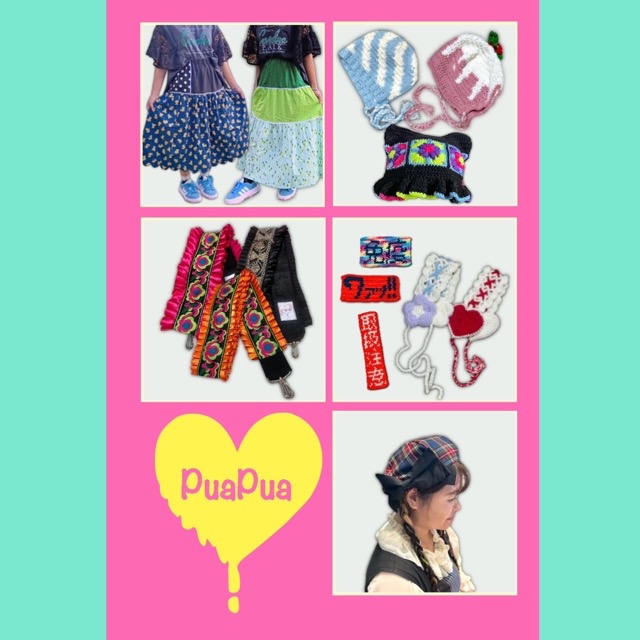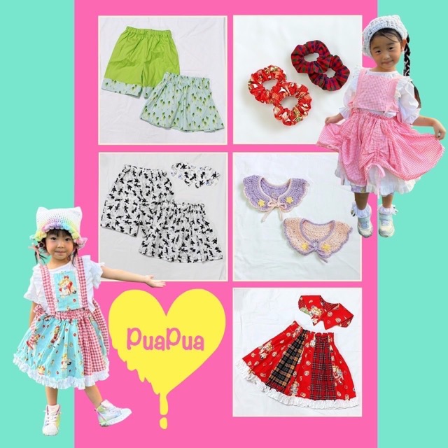 - PuaPuaはカラフルでとびきりかわいい子供服を中心に、大人服や布雑貨を手作りしています。すべてが一点物のハンドメイドで、親子で楽しめるリンクコーデやお揃いデザインも人気です。毎日をわくわくさせてくれるような、明るくかわいい色柄の洋服や雑貨をお届けします。特別なお気に入りをぜひ見つけてください。