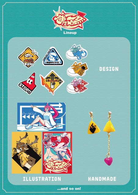 - 感情交差点は『標識』×『感情』をテーマにステッカーやキーホルダー、アクセサリーなど様々な小物を制作しています。ポップでビビッドな世界をお楽しみください。 デザイン・イラストレーション・ハンドメイド、異なる分野を得意とする8名の作家が参加するグループです。