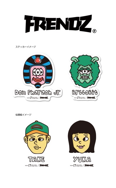 - 【グラフィックデザイナー上田ゆうすけ】 国内外のブランドや企業に作品を提供し、キャラクターやロゴを軸に独自の世界観を展開。 今回は、オリジナルキャラクターシリーズ「FRENZ」「ZOKUZOKU」などのグッズ販売に加え、イベント限定で「FRENZ」テイストのオリジナル似顔絵制作を行います。