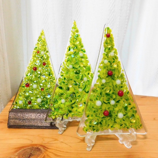 窯で溶かしたガラスアクセサリーやクリスマスツリー等