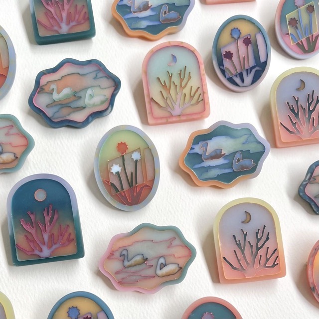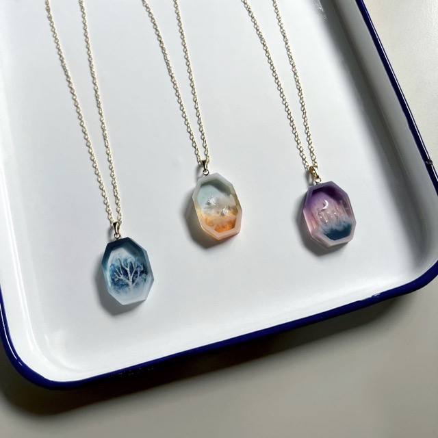 - 自然の風景から着想を得て、レジンやアクリル絵の具を使って色とりどりのオリジナルアクセサリー・雑貨を制作しています。