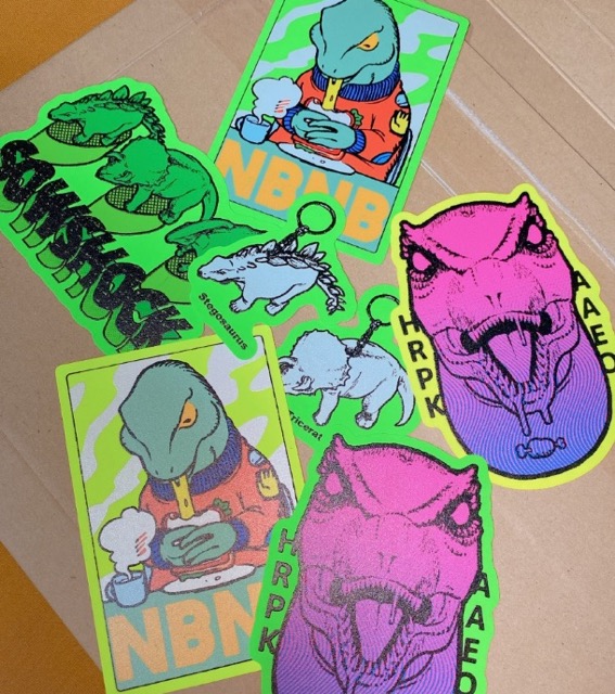 - TIRITIRIはステッカーをメインに恐竜グッズを展開しています、少年達のイラストも置いていきたいそんなスペース POPなデザインとデフォルメでない少年達のイラストの差を是非見に来て頂きたいです