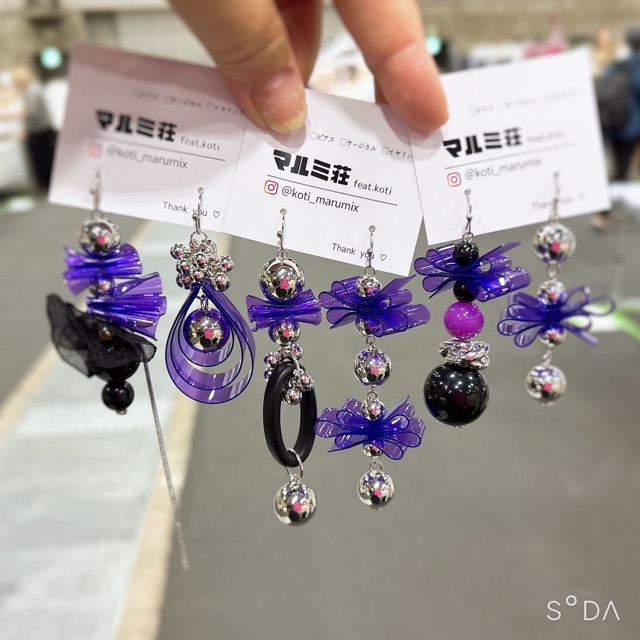 - PVC、ワイヤー、アンティークボタンを加工し製作した、誰とも被らないら個性的なアクセサリー商品を製作しています。カラフルからベーシック、そして、カッコ可愛い、見ていてワクワクするアクセサリー作りを目指しています。