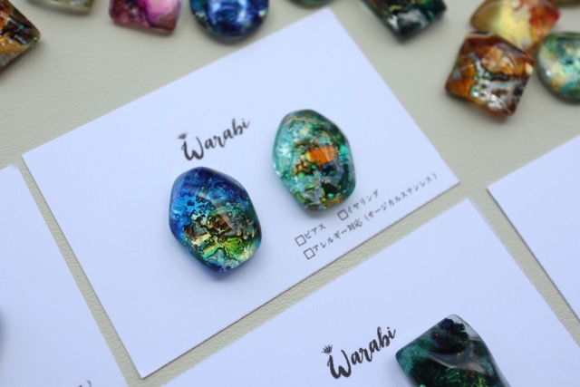 - 京都を拠点に活動し、2024年はパリ、2025年はチェコへ作品を出品しました。ガラスに直接色を塗り、まるで絵を描くように仕上げるアクセサリーは、光を受けて宝石のようにきらめきます。四季の移ろいやその日の気分を色にのせ、太陽にあたると嬉しそうに輝く姿は作った私まで見惚れるほど。たくさんの色の中から「これだ」と思えるひとつに出会えたら、それはあなたの大切ないろ。心を込めてお届けします。