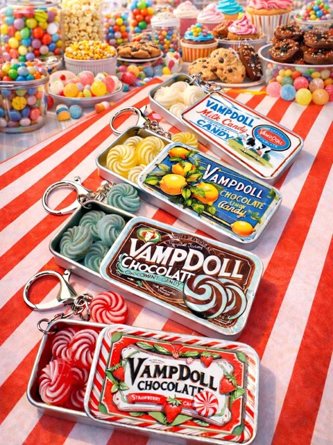 - 【Fake Candy Shop VampDoll_Chocolate】です。フェイクスイーツのバッグチャームを制作販売しています。1950年代のお菓子屋さんにタイムスリップしたようなアメリカンレトロポップなお菓子の数々に胸がときめくこと間違いなしです!130種類以上圧巻の品揃えで皆様のお越しをお待ちしております!