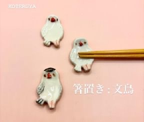 - ひょうきんでおちゃめな小鳥を陶器でカタチにしています。箸置き、ブローチ、リングスタンド、招き猫、取っ手が小鳥の急須やふた付き湯のみなど。鳥のほか、埴輪、土偶、犬猫など。オリジナルイラストのマスキングテープもあり。お気に入りを探しにいらしてください☆