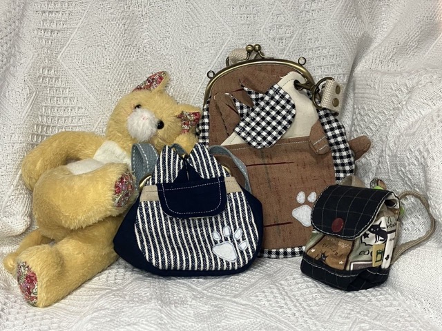 猫のぬいぐるみ、ポーチ、がまぐち、かばん