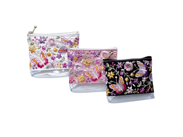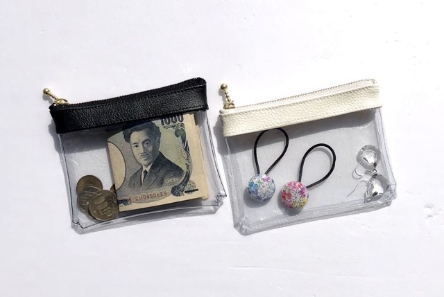 インド刺繍リボンやラミネを使った中身が見えるポーチ