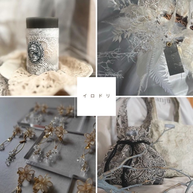 - 「ate-keアトケ」-色あせない白いシリーズ -思わず足を止めてまうそんな空間を作り出す花雑貨。「Latte Latte」アンティークな雰囲気のキャンドルとサシェ。灯りと香りで癒しの時間を。「Admy 」天然石とチェコビーズのアクセサリー。品質にこだわったジュエリーのようなアクセサリーを。「anju」マクラメやインテリア生地の雑貨。anjuならではのマクラメとジャガードの融合もお楽しみください。