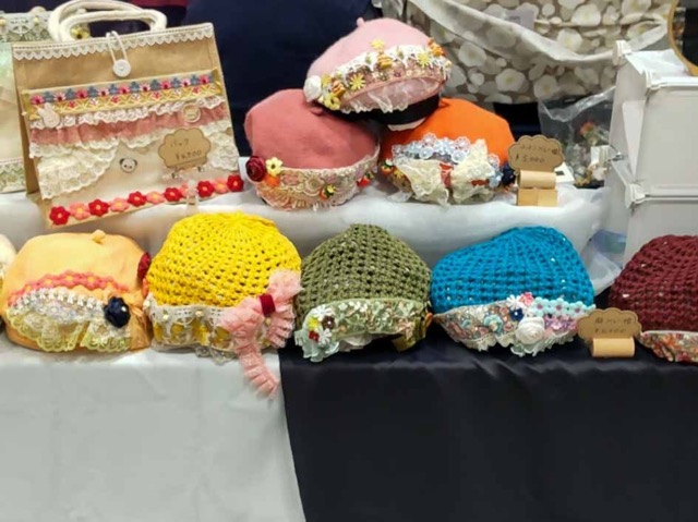 麻混在のベレー帽や通常のベレー帽が主です。