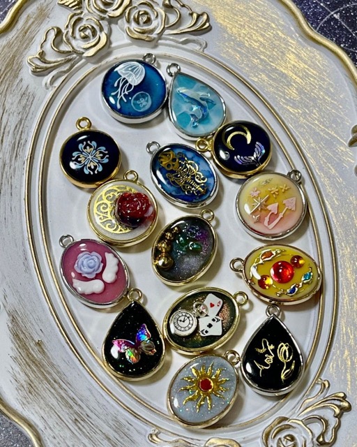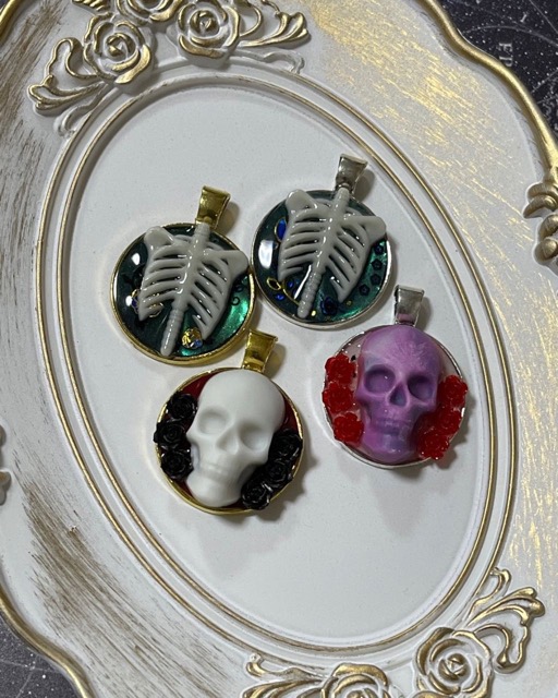 - レジンで作ったアイテムでキーホルダーやアクセサリ、小物の販売。最近ではドクロや骨などの少しダークな作品が多めです。ファンタジー要素を含んだアイテム多数。他にも、ビーズアクセ、ホイップデコなど。キッズアクセサリも少数ですがあります。