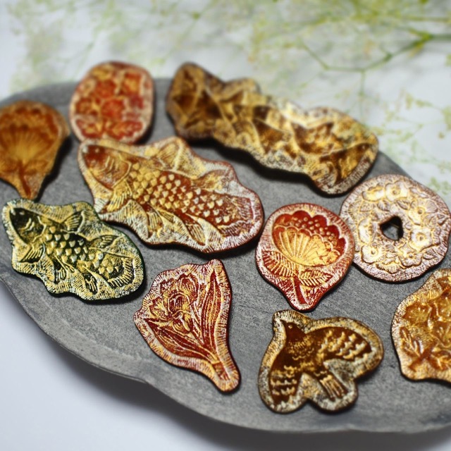 - イタリアンレザーで作成したブレスレット、ネックレス、ブローチ等のアクセサリーと手縫い鞄を販売しています。 アクセサリーは革本来の表情を生かしたナチュラルな作品と、革にモデラ等で模様を施し金箔を貼る”金彩革”の技法を用いた作品を制作し、鞄はショルダーバッグやハンドバッグを中心に制作しています。