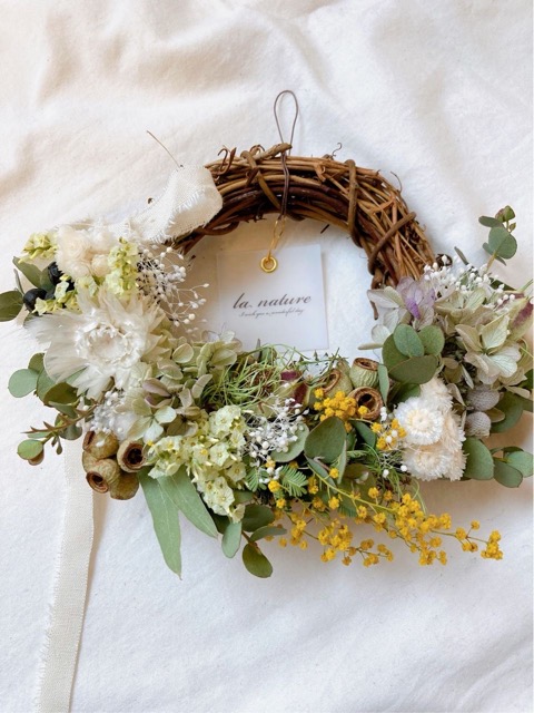 - 季節のお花を中心に生花からドライフラワーへ丁寧に仕立てたリースやスワッグ など暮らしに彩りを添える作品をご用意しました 一点一点表情の違うお花達をぜひご覧ください