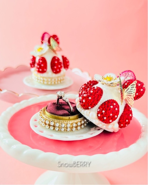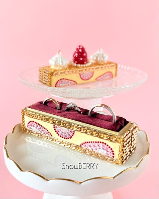 - 静かな光が差し込む午後 ガラスの扉の向こうに並ぶ きらめくケーキたち。 それは誰かに見せるためではなく 自分のために選ばれる宝物でした。 幼い頃憧れた少し背伸びした世界。 レースのドレス 金銀刺繍で飾られた小箱 そっと胸にしまった「夢」 ジュエルケーキはその記憶の続きを形にしたケーキの宝箱です。