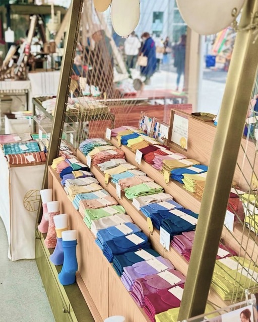 - はじめまして、「結糸(ゆいと)」です。 愛知県大治町の自社工場で、シルク・リネン・美濃和紙などの天然素材を使い、靴下や季節の小物を丁寧に作っています。 素肌にやさしく、暮らしに寄り添う心地よさを大切にしています。今回は春夏に心地よい靴下やアームカバー、ワンちゃん腹巻などをお持ちします。 素材やものづくりのお話もしながら手に取っていただけたら嬉しいです。どうぞお気軽にお立ち寄りください。