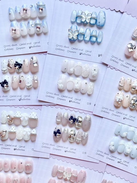 - タイプの違う2人のネイルチップ作家です。すべてハンドメイドのオリジナルデザインで、サイズや形違いもご用意しています。ガーリーからクールまで、幅広い可愛いをお楽しみいただけるラインナップでお待ちしております。