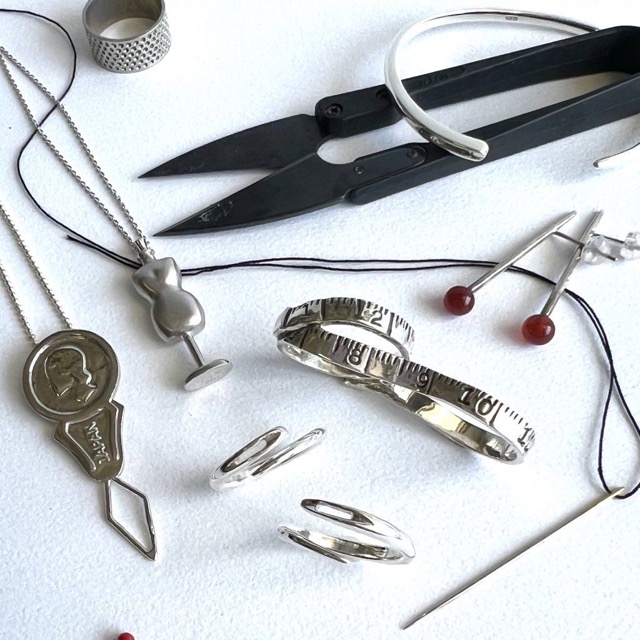 - 洋裁好きなジュエリーデザイナーがつくる裁縫道具をモチーフにした本格シルバージュエリーと 揺れるドレスや連なるりぼん等ファッションの装飾品を元にデザイン製作した『ちょっとドラマチックなシルバージュエリー』を展開してます。