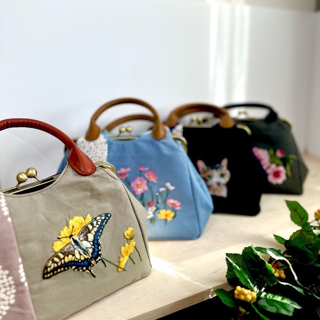 手刺し刺繍とがまぐちバック、など