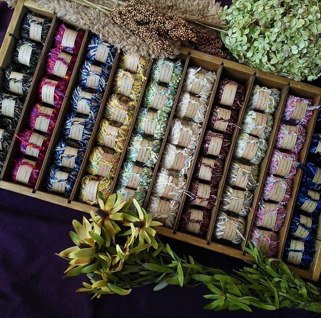 - たくさんの方に「糸の美しさ」に触れて頂きたいという思いで Original引き揃え糸を制作しております。 糸は手染め糸や変り糸を中心に様々な糸(素材、形状、色)を独自の感性で引き揃え、糸を足したり引いたりしながら1つの糸玉にしています。市販にはない個性的なOriginal糸を楽しんで頂けたら幸いです。