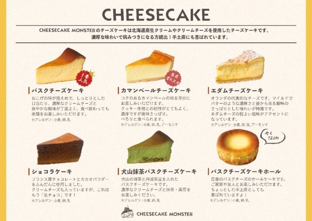 - 私たち「チーズケーキモンスター」は、北海道産クリームチーズと純生クリームを贅沢に使用した濃厚ながら後味の軽やかなチーズケーキを販売しております。一つ一つ箱に入れたカットチーズケーキをご提供しております。