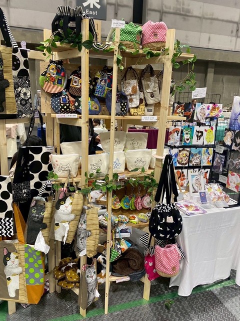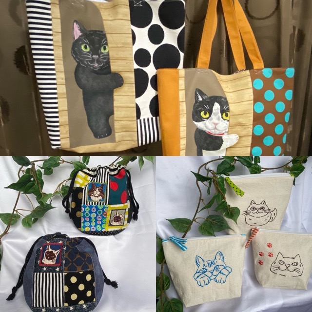 - オリジナルの猫のイラストを刺繍したポーチ・巾着や猫柄を使った布小物を製作しています。 今回も、カラーインクを使用した色鮮やかな動物イラストやオリジナルキャラクターのイラスト作品も出品します。