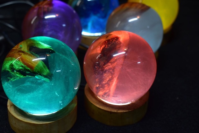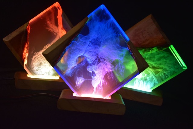 樹木と樹脂を合わせたウッドレジンのLEDランプ