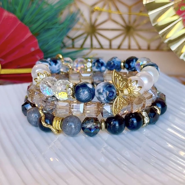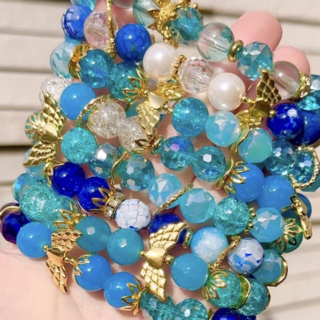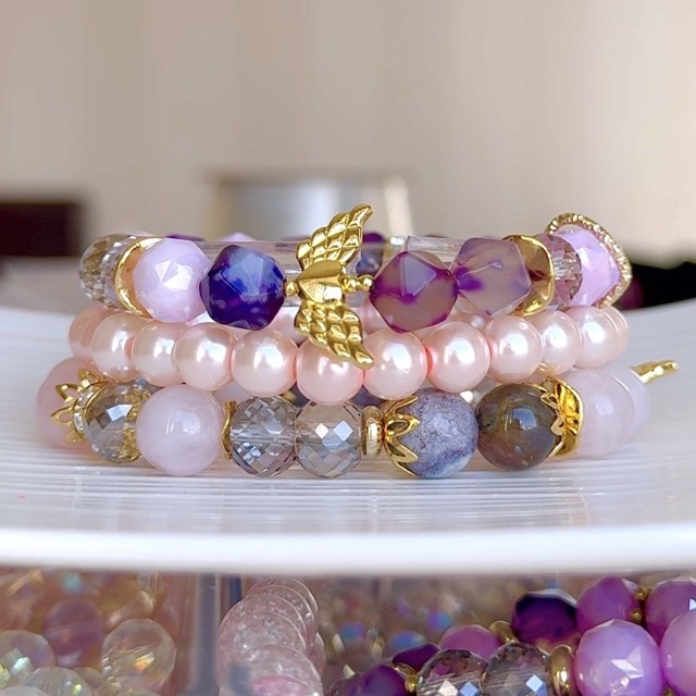 - 厳選した天然石と透明度の高いガラス、 大きさや形にもこだわったブレスレットジュエリーです。 さらに、ビーズとビーズの間に使う【ロンデル・スペーサー】をふんだんに使い、しっかりとした重厚感のあるデザインにしました。 他にも手描きペイントビーズを使用したストラップやショルダーも。 今回、天然石を使った新商品多数です。