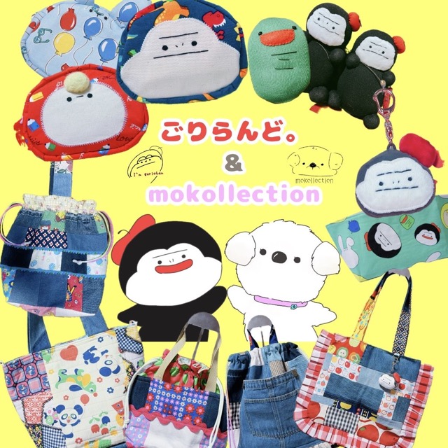 - 「ごりらんど。」「mokollection」 親子で活動しています ごりらんど。はごりらの妖精ごりちゃんと愉快な仲間達のデザインが施された布小物を作成しております 誰かの笑顔の隣に居るそんな作品作りを心がけております mocollection(もこれくしょん)では デニムリメイクをメインにワクワクドキドキ 誰もが可愛くてオシャレになれちゃう世界に一つだけのバックを制作しております!