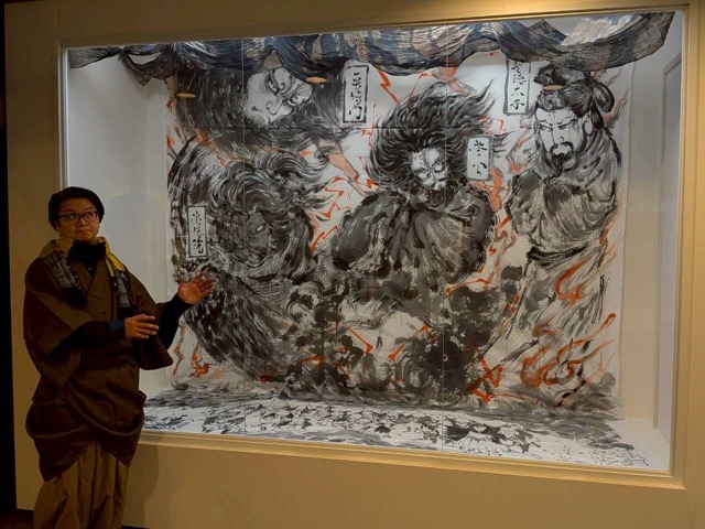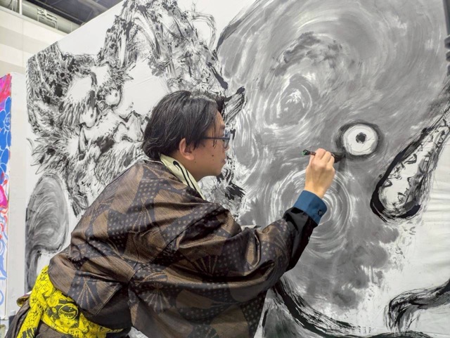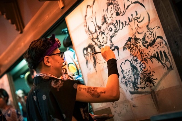墨彩で描く妖怪、両日違う絵を一気呵成に描き上げます