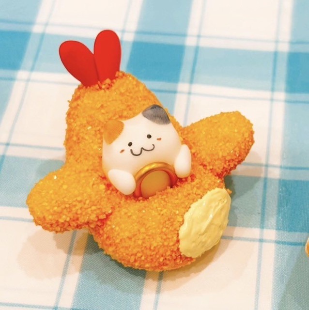 - 1つ1つ手作業で造られた樹脂粘土雑貨。フェイクフードと猫のコラボが人気。海老フライシリーズでは衣のサクサク感やマヨソースをリアルに再現しました。※食べられません