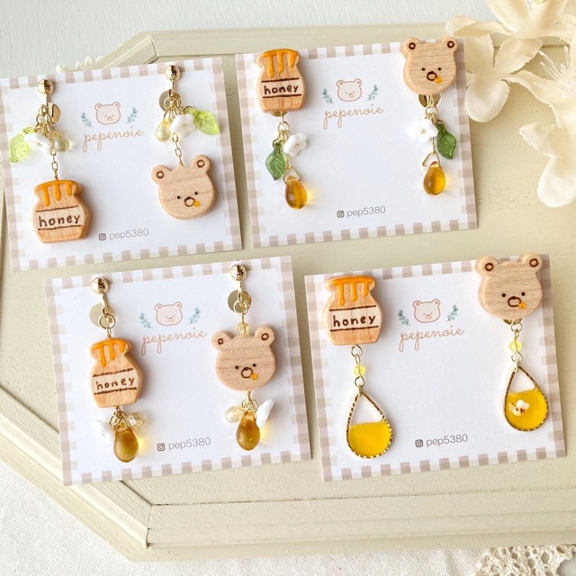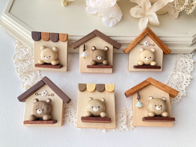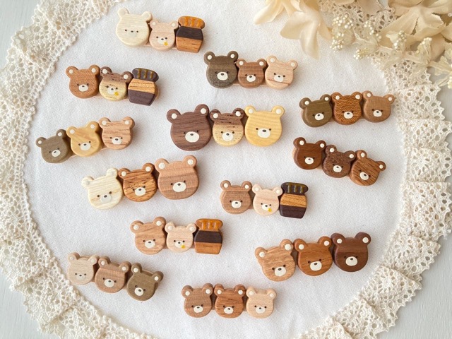 - 木のぬくもりを大切にした、くまモチーフのアクセサリーです。一つ一つ手作業で丁寧に仕上げているため、表情や木目が少しずつ違いそれぞれの表情を楽しんでいただけたらと思います。木ならではのぬくもりを日常の中で感じてもらえたら嬉しいです。そっと心が和らぐような気持ちになりますように。