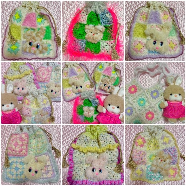 スタンプ ミニチュアチャーム 手編み巾着など