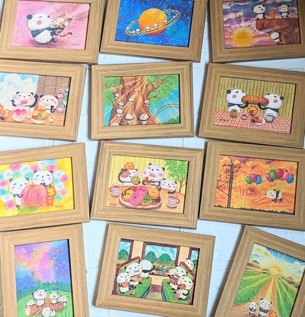 パンダと時々カエルくんのイラスト原画とグッズ