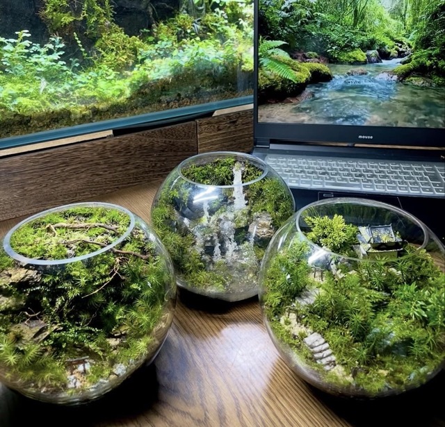 - 苔テラリウムと、水やり不要で楽しめるテラリウム作品を制作しています。 自然素材を使い、小さな風景や静かな世界観を表現しています。 インテリアとして空間に馴染みながら、自然の奥行きを感じられる作品を目指しています。