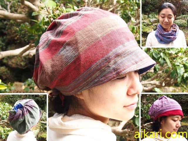 手織り綿を使った帽子